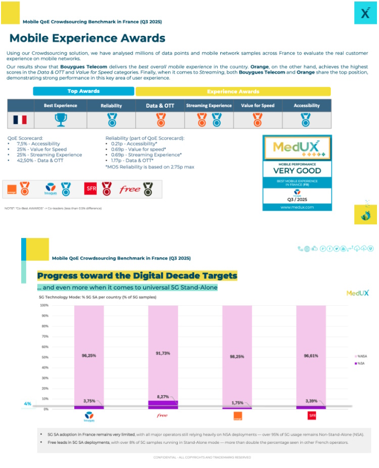 Sur la base des mesures réalisées au troisième trimestre 2025, MedUX a attribué plusieurs distinctions reflétant la diversité des usages mobiles :