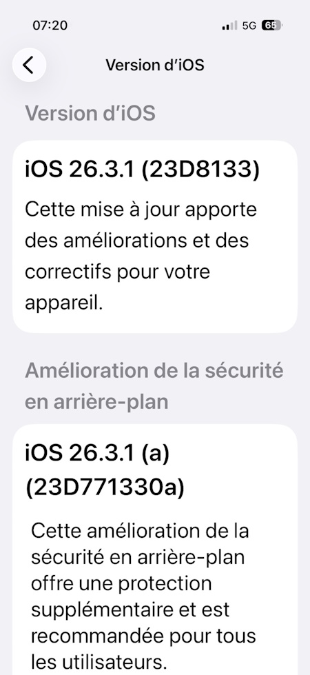 Ce nouveau mécanisme, baptisé « améliorations de la sécurité en arrière-plan », n’est pas totalement inédit dans les laboratoires d’Apple. En développement depuis plusieurs années, il avait été introduit de manière préliminaire avec iOS 26.1. La version 26.3.1(a) marque toutefois sa première mise en œuvre concrète à grande échelle.