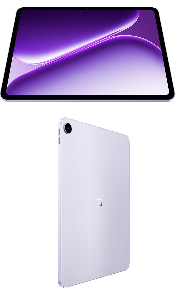 Côté design, OnePlus décline sa tablette en deux finitions distinctes. Lavender Drift joue la carte de l’élégance avec des nuances de lavande subtilement mises en valeur par des rainures finement gravées, qui varient selon la lumière. Shadow Black adopte une approche plus sobre et moderne, avec une finition mate douce au toucher et un léger effet satiné.