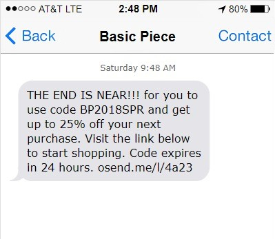 Cependant, envoyer un SMS au bon moment est efficace car il n'est pas habituel. Ajoutez une incitation à ce mélange et vous avez un message difficile à ignorer.